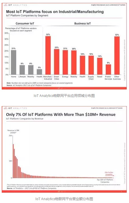 以物联网平台为例,根据IoT Analytics最新物联网平台报告显示,目前,全球有450家物联网平台公司,其中一半位于美国,只有7%的物联网平台营业额超过千万美元,并且有近150家物联网平台公司聚焦工业领域。