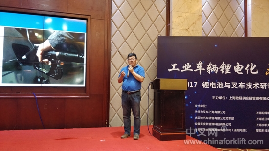 会议由叉车后市场秘书长刘世宏主持,并以主题为“锂电技术对工业车辆的冲击波”阐述锂电技术在工业车辆节能技术上的现状和发展趋势。
