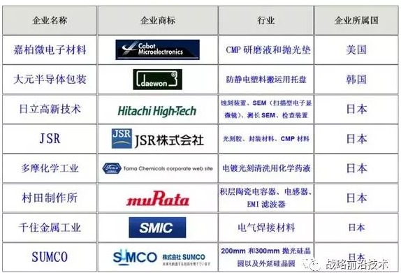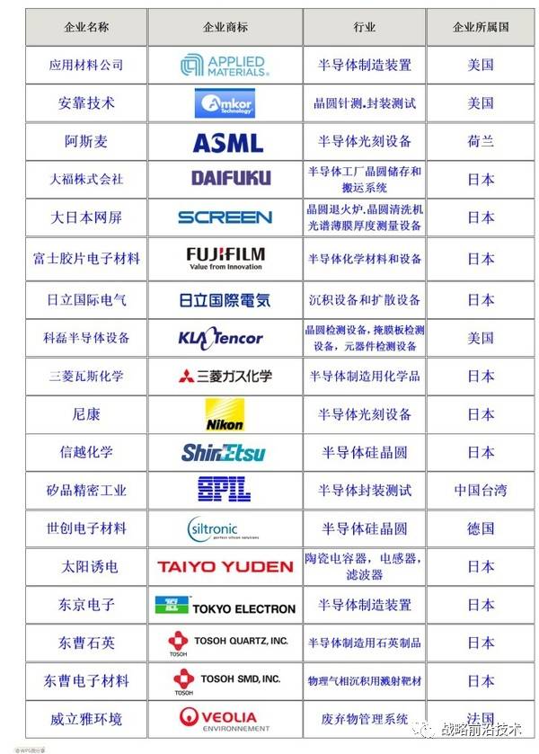 基本被日本,美国霸占,看intel的最佳供应商就知道了。不同的是中国想买有些国外设备,别人不卖。