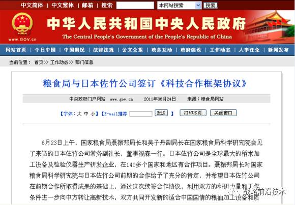 A、 日本SATAKE长期致力于发展人类三大粮食作物之一的稻米方面机械设备,旗下囊括的粮食食品设备、实验检测设备、关联环境机械设备等方面市占率均为第一位,供应从单一到成套系统的全方位设备。 全球主要稻米粮食国家政府与企业均与SATAKE有合作,包括中国、美国、东南亚、南美等地区。如图是中国国家粮食局与日本SATAKE建立的《科技合作框架框协议》。