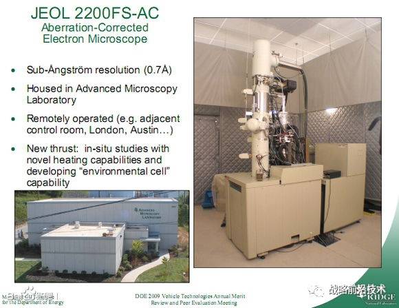 C、探索微观世界的“队长”——电子显微镜,本人有幸去过两次中科院物理所,那里最顶级的场发射透射电镜按rmb计价可达3000万/台,豪无疑问能否自主设计建造高分辩的透射/扫描电镜是对一国电子工业水准的重要考核环节之一 目前全球高端电子显微镜主要有两大品牌:JEOL和FEI,前者是日系后者是美系,这里说下日系的 美国能源部橡树岭国家实验室引进具有原子级分辨率的JEOL-2200FS像差校正场发射透射电镜提升精密材料学的研究水准,并建立全球实验室以让境外如伦敦帝国理工的科学家通过高带宽低延迟网络远程操控JEOL的此电镜。