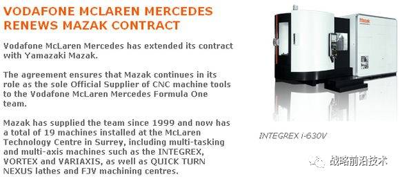 马扎克做为超跑公司迈凯轮的唯一cnc供应商安装了各种机床总共19台在他的技术中心。