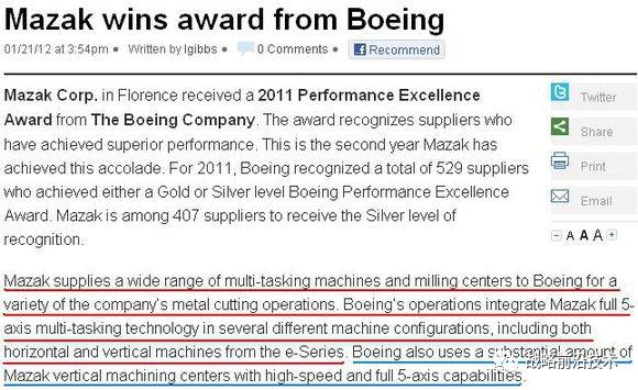 日本山崎马扎克为美国波音公司最佳供应商。