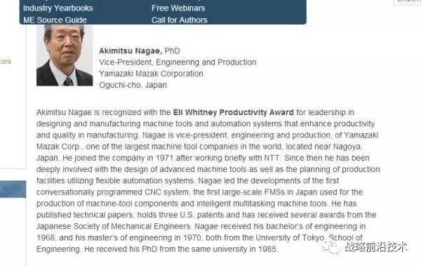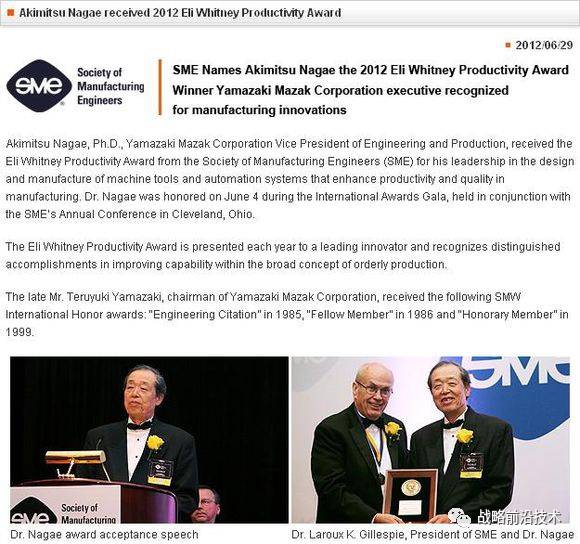 美国制造工程师学会惠特尼生产力奖获得者-山崎马扎克。