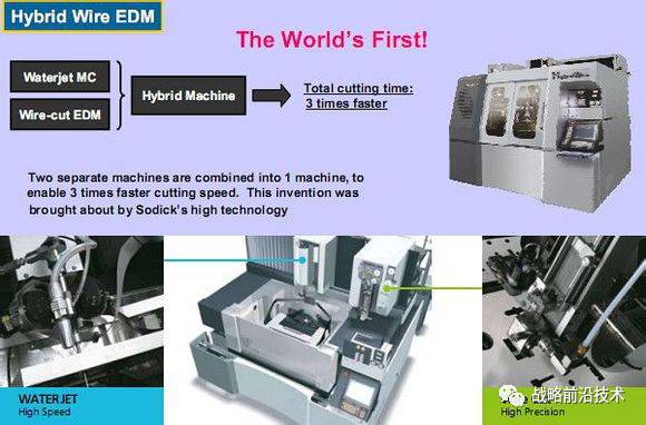 sodick(沙迪克)将电火花式加工与水刀式加工结合成功开发出世界首台混合动力线切割放电加工机。