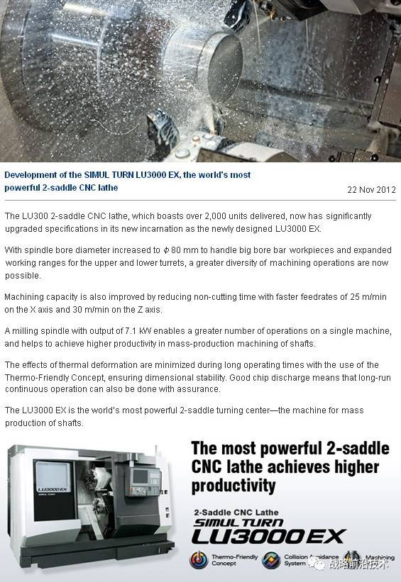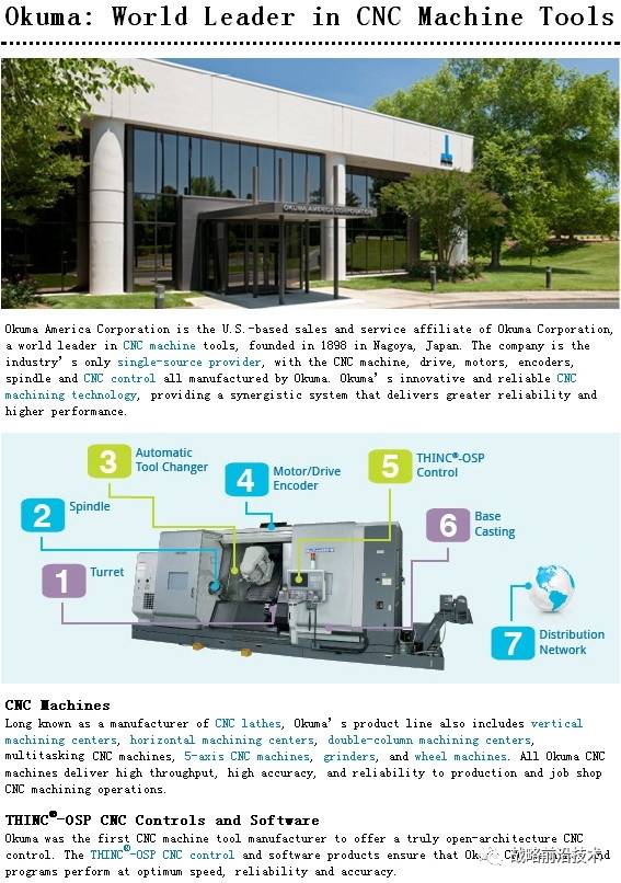 双主轴双刀塔车床的代表者——okuma(大隈株式会社);okuma最令人称赞的是这家公司是全球机床界中唯一的“全能型制造商”,几十年来一直坚持从核心部件(驱动器 编码器 马达 主轴等)到数控操作系统到终端,全部由自社设计开发完成,真正实现了软硬兼备。