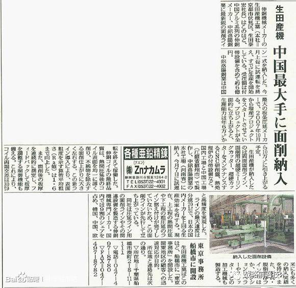 中国高精尖科研设备铜材主要提供商,国家重点扶持机构中铝洛铜向日本生田产机购买一整条伸铜双面铣面切削生产线;世界几乎所有汽车品牌上的铜材的加工过程都要利用生田产机的设备完成。