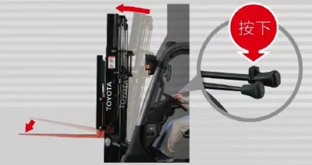 货叉自动水平控制,取放货物时可通过倾斜操作杆上的货叉自动水平按钮一键调平货叉,提升效率的同时让你告别斗鸡眼!