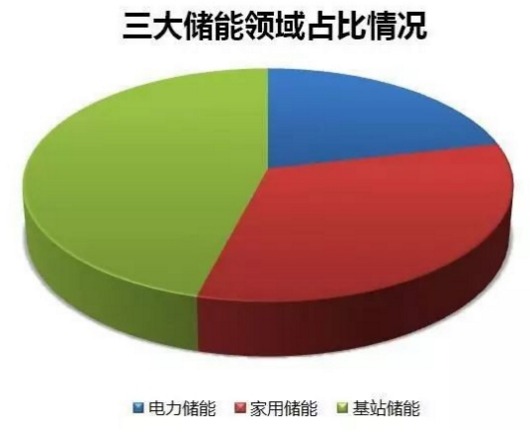 目前在储能电池市场,主要有三大应用领域:电力储能、家用储能以及基站储能,其中通信基站的后备电源领域目前占比重较大,占到整个储能电池市场的将近一半份额: