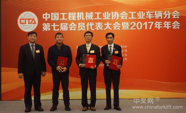 为表彰长期对推进工业车辆分会发展和科技进步做出杰出贡献的工业车辆工作者,经协会六届理事会审议通过,决定授予中国工程机械工业协会工业车辆分会会长陆大明、台励福机器设备(青岛)有限公司董事长林溪文、卡斯卡特货叉(河北)有限公司顾问杨宝勤“中国工程机械行业工业车辆终身成就奖”。中国工程机械工业协会常务副会长苏子孟代表理事会向三位获奖人员颁发了奖杯和证书。