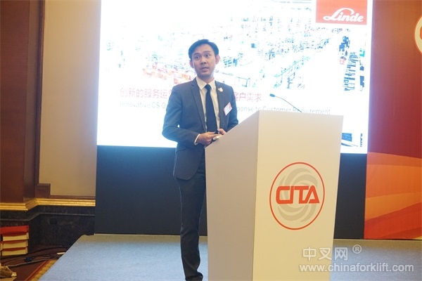 凯傲集团亚太区企业战略部总监连宗庆先生介绍了“竞争中突围,林德创新服务平台”。突出快速响应客户,注重客户的口碑效应,提出改善客户的体验价值。连总监强调:“林德可为分布在各地的26000家的客户提供专业的售后服务。林德创新服务平台是基于内部物流4.0概念下打造,供应链自动化市场是潜在的增长市场,无缝对接一站式产品供应,使市场地位和区域网点互为补充,强劲的利润增长和价值创造能力。管理流程优化,改善客户体验,企业口碑提高,营收渠道多样化,可提高盈利能力。