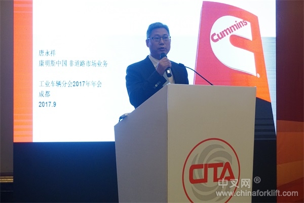 康明斯(中国)投资有限公司非道路业务总经理唐永祥先生就“助力工业车辆全球化发展”在大会上简要介绍了康明斯的发展历程,重点介绍了发动机技术的发展方向、工业车辆未来技术展望以及中国四阶段产品的覆盖。