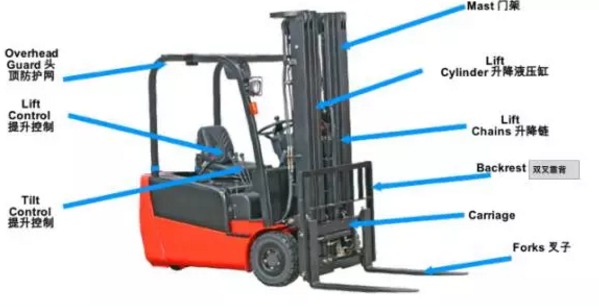 在这里提一下护顶架,主要为了防止坠物掉落伤害发生。国内法规要求,当起升高度大于1.8米的叉车需要配备护顶架。日常我们看到的部分堆垛车是没有护顶架的,需要注意了。按照风险角度来说,我推荐当起升高度大于操作者身高的时候建议使用带有护顶架的叉车。