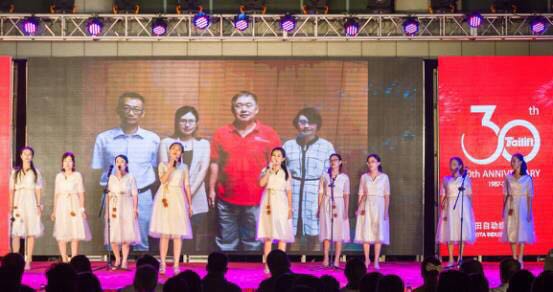 在部分员工表演时,投影放映着“我在台励福日子”的员工照片回忆,通过企业大事件的回顾以及从员工角度纪录台励福30年的点点滴滴,唤起大家初次相遇的那一刻。