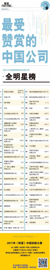 《财富》2017年“最受赞赏的中国公司”全明星榜