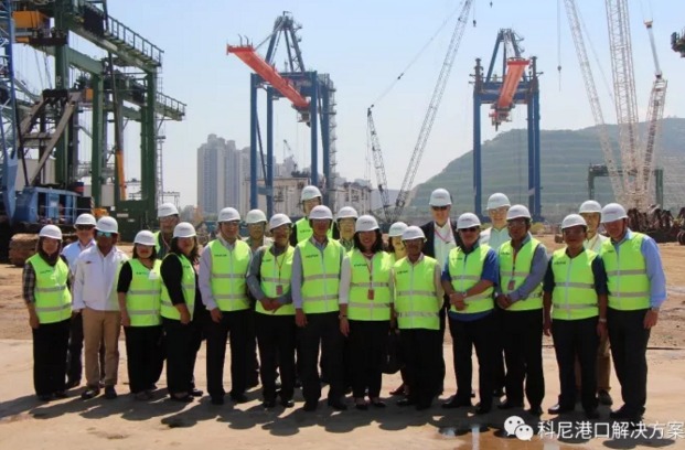 接着,厦门工厂管理层陪同沙巴港管理层代表团一起参观了工厂生产现场,并在11月份即将交付给沙巴港的STS前合影留念。