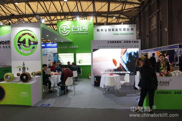 10月31日-11月3日,在展会上,杭州台创展示其最新的以聚氨酯为主要原料生产各种类型的高反弹聚氨酯实心轮胎产品系列,并推出多项创新产品和技术,专注于在物流仓储车、AGV小车的广泛应用,吸引相关厂商和新老客户的关注。