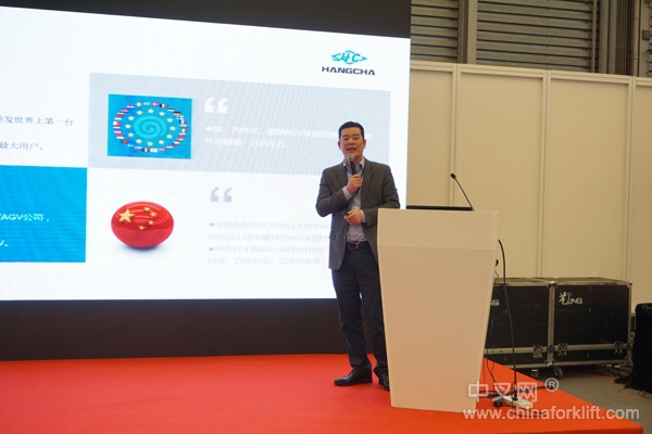 安徽合力股份有限公司副总工程师、合力工业车辆(上海)有限公司总经理周齐齐先生在会上作“开展智能产品研发,推进产业转型升级”主题演讲,就公司简介、发展背景、发展战略、主要工作等四方面进行详细讲解。周总表示:“工业4.0在国内掀起新一轮创新发展大潮,机器人、大数据、互联网+正促使传统产业发展深刻变革。合力紧随时代发展步伐,继续以市场为导向,以技术创新为动力,加速产品与互联网+技术的深度融合,加快产品的智能化产业步伐,加快企业产品的升级和转型。”并在会上详细讲解了合力在智能物流搬运系统领域的研发成果,展示了合力AGV叉车的成功应用案例等。