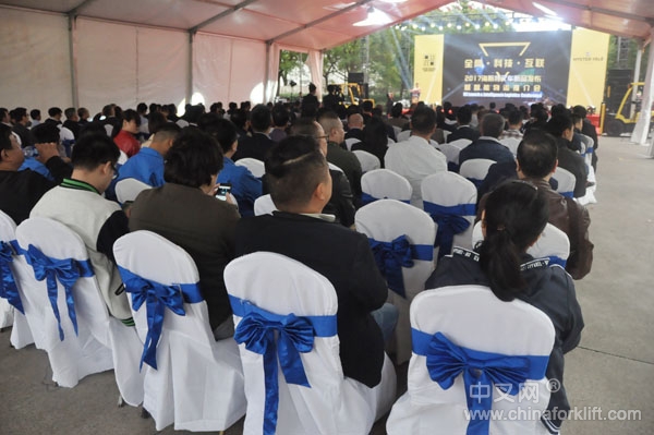 11月3日下午14:30,以“全网·科技·互联”为主题的2017海斯特叉车新品发布暨智能物流推介会在海斯特中国工厂内隆重举行。海斯特一耶鲁集团大中国区总经理梁锦鸿、海斯特中国总经理叶勇先生、海斯特中国大客户总监刘国胜先生及来自全国各地的海斯特客户代表和代理商及媒体参加了本次活动。中国叉车网(www.chinaforklift.com)受邀出席本次活动。