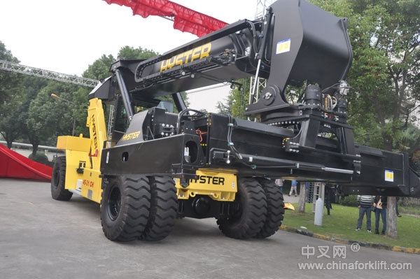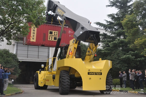 海斯特工作人员现场为嘉宾展示了该款正面吊的驾驶室的灵活性,为了体现海斯特RS系列正面吊的操作灵敏性和强悍动力,还演示了RS45系列正面吊各种功能。