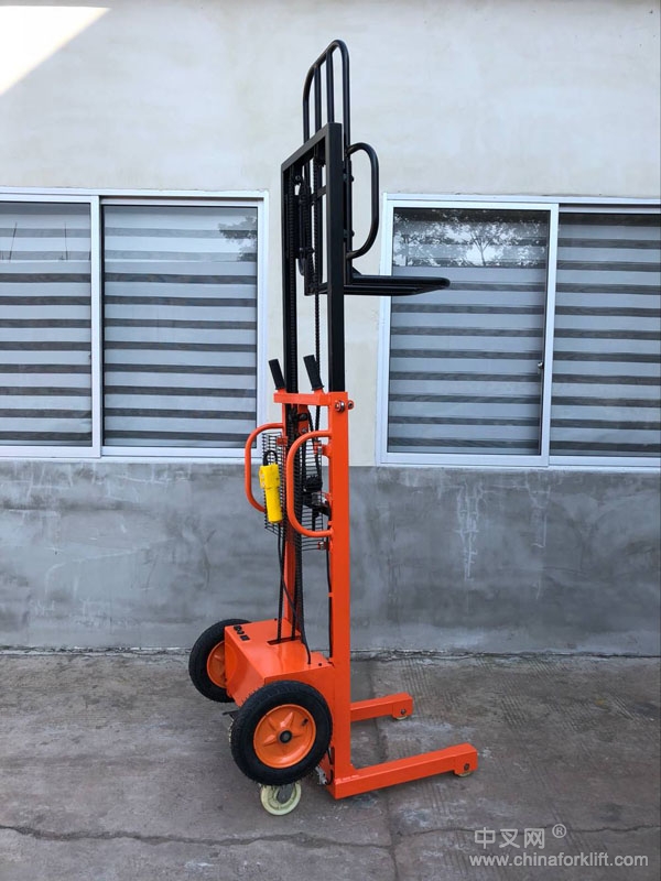 电动堆高机装卸车俗称“老虎车”。主要应用于工厂、仓库、物流系统中托盘的堆垛作业及短距离运输,也可用作货物的装卸作业。本车辆以电池作为动力源,采用铁芯橡胶车轮,限于在水平地面使用。