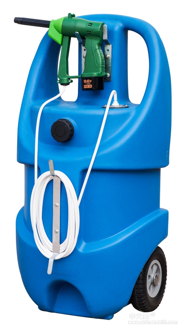 据不完全统计每年有大量的叉车电池因加水不及时而报废。为了方便叉车操作人员为电池加水,宁叉公司结合自己出口欧洲的产品,开发出一款针对中国市场的便捷性电动加水车。该产品由一个自带轮子的10加仑的加水桶,一个电池,一套充电器和内置的12V的泵组成。当电池液面水加满时,自动停止。极大的改善了叉车加水的便利。