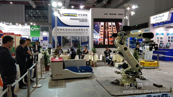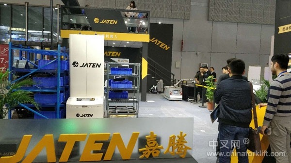 嘉腾展示的Smartbee(小蜜蜂),利用磁导航,双驱双向堆垛式,定位精准,上下料方便。一般适用于小型立体智能仓库。