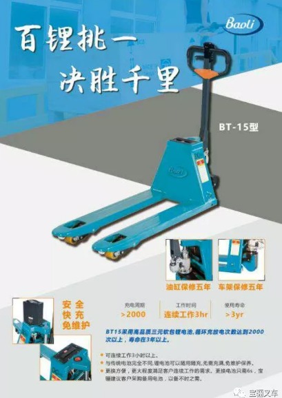 ❸ 在宝骊购买的半电动托盘车,可享受车架质保五年,油缸质保五年的超值服务。