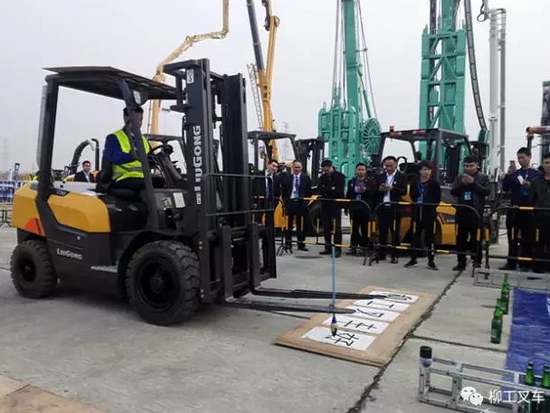 叉车产品线中最惊艳的莫过于今年3月份成功上市的C系列内燃叉车了,其卓越的4C性能表现,特别是其可媲美国际品牌的超低振动和高运行平顺特性,让钢丝绳挂啤酒瓶和书法表演变得轻而易举,展示区中超大的LED屏则循环播放着柳工叉车在央视“挑战不可能”节目中的精彩演出,赢得了国内和国际经销商一阵阵喝彩,不少人当初跃跃欲试,最后均挑战成功,柳工C系列叉车果然名不虚传!
