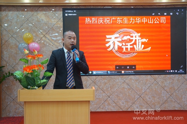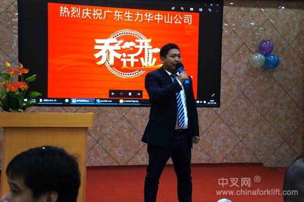 早上11点18分,广东生力华柳工机械销售服务有限公司总经理廖其章先生致辞,对来宾们能参加此次乔迁仪式表示热烈欢迎,廖总说:广东生力华成立于2002年,是柳工机械销售服务有限公司专营广西柳工机械股份有限公司生产的柳工系列产品,产品包含叉车、装载机、汽车起重机、压路机、空压机、混凝土搅拌车、扫地机等,同时经营上述系列产品及其他品牌产品的上门维修服务、租赁服务及零配件供应等综合性业务。中山新公司设有新车库存,大家可近距离接触柳工的工程机械产品,包括叉车、装载机、起重机等。我们深知柳工在产品设计、制造、技术方面的投入都是为了更好的“服务客户”,生力华公司在持续发展的同时,始终致力于企业文化的建设,秉承“全力以赴,做到最好”的服务态度,始终坚持“品质为先、诚信为本、服务至上”的发展理念,持续锐意进取、拼搏创新,追求卓越,用不懈的努力开创未来,经过15年的发展和历练,生力华已形成一套较为完善的服务体系,中山公司乔迁是我们对客户的承诺,为我们的合作伙伴提供统一的高水准服务。