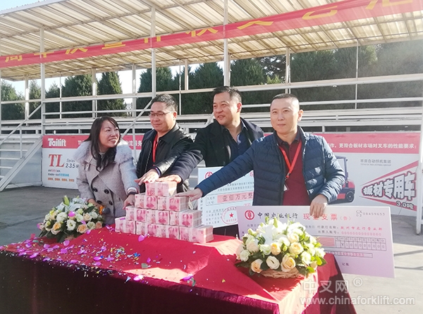 台励福在胶州工厂内展示了2017年主打内燃平衡重叉车、电动平衡重、仓储类等新品,展示其最新的物料搬运技术,台励福叉车工作人员分别为嘉宾一一介绍,并进行了演示。人性化设计,高端配置,赢得了在场每一位代理商的称赞,纷纷旋盖欲试驾和了解每一款车型的配置等。