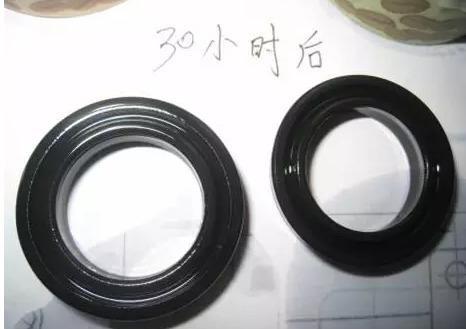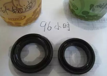 三元乙丙橡胶件(市场常用橡胶件)对矿物油与制动液的反应试验。