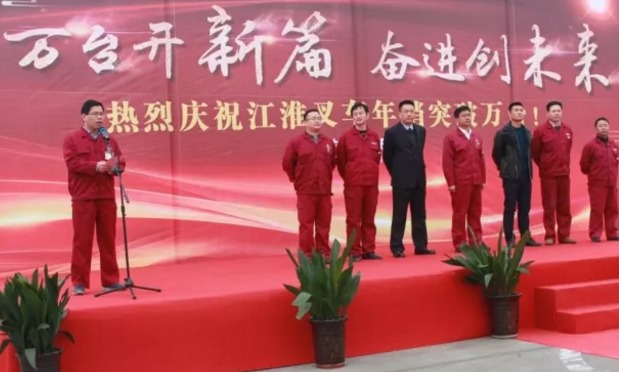 2017年11月30日,以“万台开新篇 奋进创未来”为主题的江淮重工年销突破万台庆典仪式在合肥举办,江淮重工经营领导团队、公司全体员工参加。部分经销商代表和客户代表应邀出席庆典仪式,庆典由公司副总经理、党委副书记谢振兴主持。