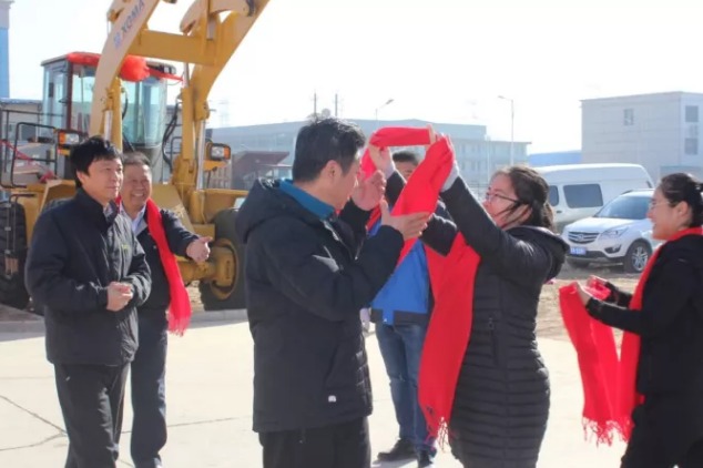▲为嘉宾献上红围巾,送去寒日的温暖