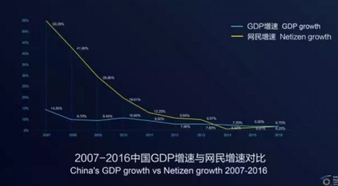 中国互联网网民的成长速度和中国GDP成长速度的比较图