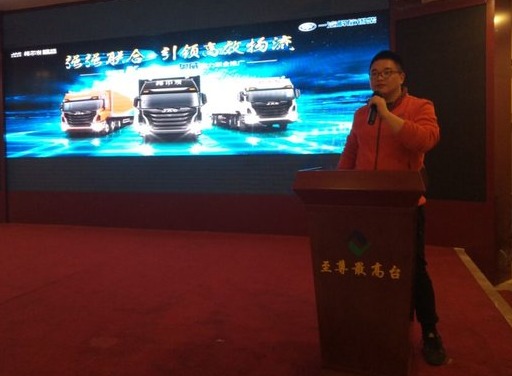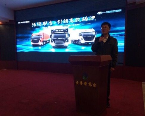 一汽解放锡柴安徽分公司品牌经理陈立先生对锡柴企业概况、锡柴奥威国五产品优势和服务优势做了详细的介绍,特别是锡柴奥威发动机采用了原生四气门技术、最新平台的增压器、智能起动机、机油冷却滤清集成设计等高新技术,大大提高了发动机的节油性、舒适性和安全性。同时介绍了一汽解放锡柴围绕客户需求,不断为用户加大服务资源的投入,推出了400热线派工和锡柴智慧APP。