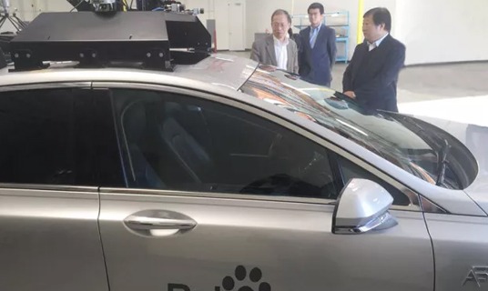 谭旭光一行参观百度阿波罗无人驾驶研发中心。