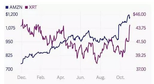 去年年末至今,亚马逊的股价走势超过标普零售指数。Quartz 称,亚马逊在AI 和机器人方面的投入与使用是促成其股价走高的重要原因之一。顺便一提,瑞士央行也大举购入了亚马逊的股票。