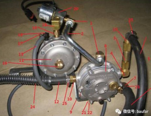 如果K25装单燃料LPG套件后,减压阀8出现结冻,有如下一些重要情况会导致: