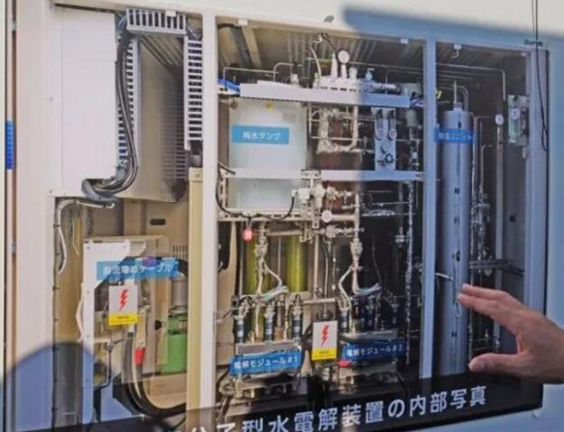 180块回收自二手普锐斯的电池组构成了这个“大蓄电池”,由于风力发电非常容易受天气影响——在风速过小或过大时,风力发电机都无法工作。因此,这个“大蓄电池”就用于缓冲、消除由于风力发电机工作断续带来的供电波动,保证下方的水电解制氢装置可以得到持续的供电。
