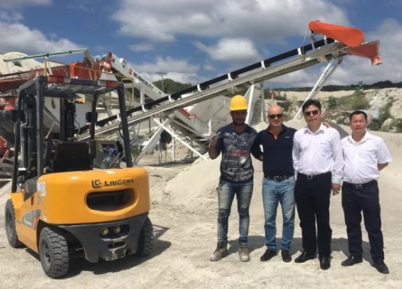 近日,为了更好了解当地市场柳工叉车的产品表现和服务支持等情况,柳工机械股份公司副总裁王太平、柳州柳工叉车有限公司副总经理肖远翔与阿根廷Cordoba当地经销商一起对南部的Blancaley(布兰卡雷)矿山公司及客户进行了走访。布兰卡雷矿山公司在SANAGUSTIN市附近拥有多座矿山的开采权,经山体爆破、搬运、拣选、筛分后向客户提供各种体积的建筑砂石。Blancaley公司现在拥有多台柳工装载机和叉车搬运设备,由于现在市场需求旺盛,现场设备每天作业时间都在20个小时以上,柳工产品完全满足布兰卡雷公司2条粉碎生产线每天300吨的石料装载和搬运需求。