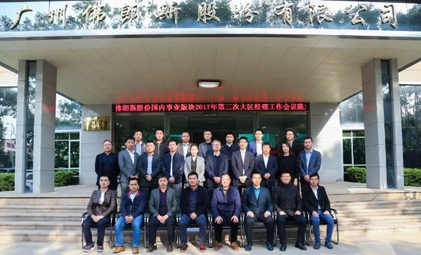 2017年12月9日-10日,佛朗斯股份国内事业版块2017年度第三次大区经理工作会议在广州总部隆重召开。公司总经理侯泽兵、副总杨庆元、总助霞朝明、总部相关职能中心干部及18位大区经理参加会议,会议由总助霞朝明主持。