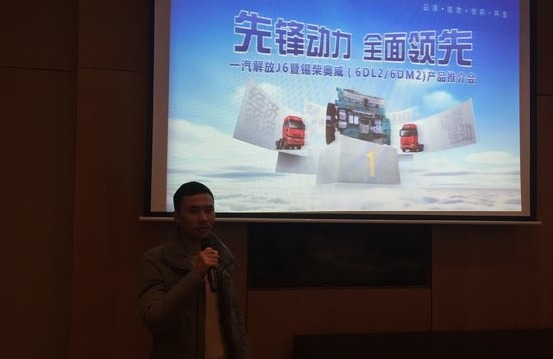 蒙城商用销售部部长方伟致欢迎词,感谢大家百忙之中抽出时间参加本次推介会,同时也感谢这一年来大家就解放以及锡柴的支持。祝愿大家在新的一年有新的起点。