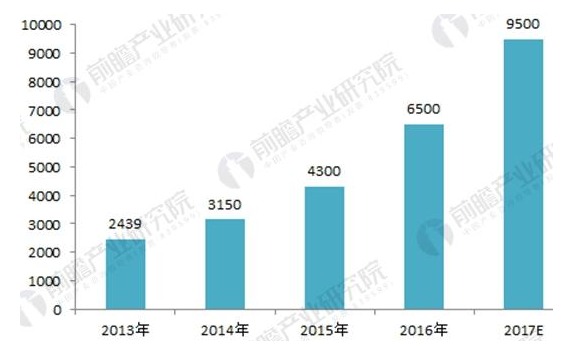 根据AGV机器人发展趋势,前瞻预计2017年AGV机器人将达到9500台,较2016年增长46.15%。