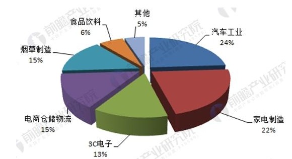 此外2016年,除了工业级的应用外,AGV开始向商业行业推广应用,其中对AGV需求最大莫过于电商仓储物流、烟草和3C电子行业,三者占比分别为15%、15%和13%。