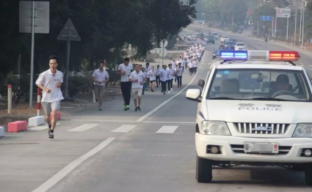 长跑过程中,全程有警车跟踪式保驾护航和120紧急救援车做预防意外准备