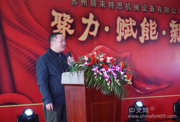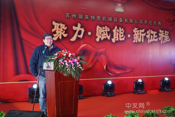 随后,中国叉车后市场联合会秘书长刘世宏发表庆典致辞,在叉车后市场领域,金鹰科技和瑞来特思都是防爆叉车领域的资源企业。自2008年金鹰科技是我们较早一批从事叉车防爆资质的企业,拥有一支精良的服务团队。通过在苏州成立防爆技术研发中心和苏州瑞来特思机械设备有限公司不断发展壮大。本次乔迁新址,服务厂地更大、设备更加齐全和专业。服务防爆业务更加广泛,产品涉及类型更广。不断提升品牌影响力,形成了完整的防爆叉车改装体系。