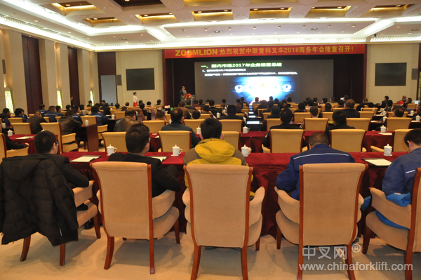 1月19日,中联重科安徽工业车辆有限公司在芜湖海螺国际会议中心召开新年商务会。围绕“走进新时代 再踏新征程”这一主题,探讨新形势下的营销之道,布局2018年的发展之路。来自全国100余家经销商代表齐聚一堂,共同回顾了过去一年里中联重科叉车在全国发展状况和取得的优异成绩,共谋未来转型升级的发展大计。中国叉车网(www.chinaforklift.com)作为行业媒体,受邀参加并进行了现场报道。