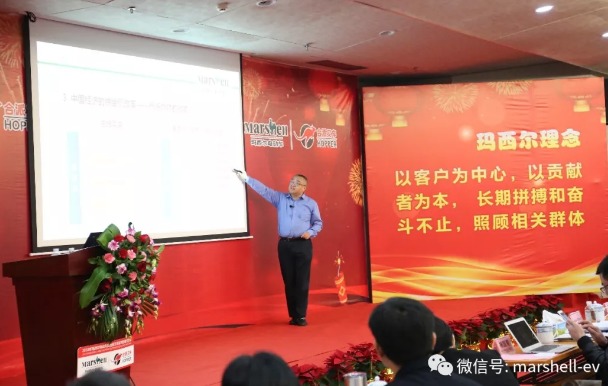 玛西尔集团总裁董中华在会议上介绍了玛西尔产品及企业发展状况。他从工厂、物流、产品和研发等方面深度分析了玛西尔自身优势,明确了2018年的市场目标及策略。华总表示:我们会继续为各行业的客户创造价值、和各位经销商朋友们实现共赢,我们在未来一定会成为世界级的电动车制造商,愿我们一起努力,在2018年更上一层楼。