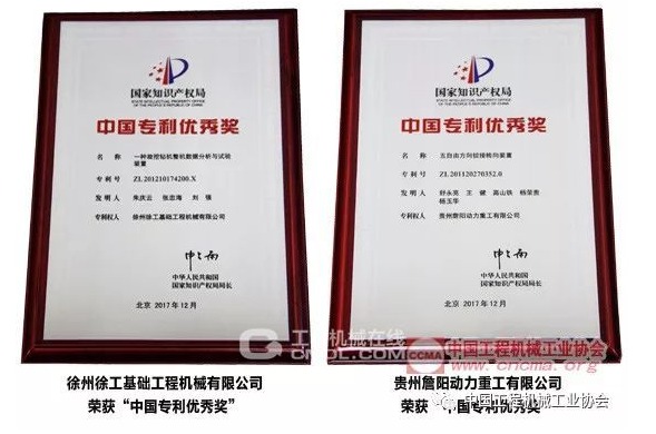 2017年12月11日,国家知识产权局公布第十九届中国专利奖获奖项目名单,工程机械行业九项专利获“中国专利优秀奖”。